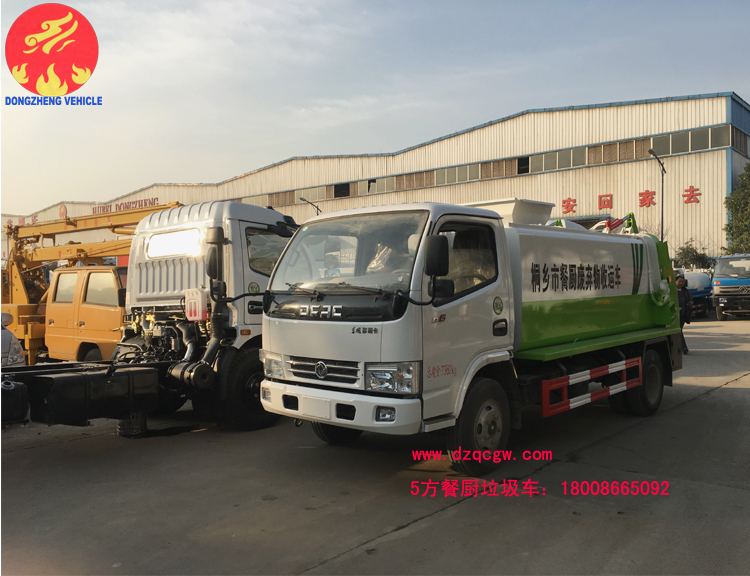浙江省嘉興市桐鄉市政在我公司訂購6臺餐廚垃圾車,該餐廚垃圾車采用東風小多利卡國五底盤,朝柴102馬力,3308mm軸距,鋼絲胎,ABS。圓形碳鋼罐體,罐體厚度5mm,拉桿提升機帶上蓋聯動;后蓋液壓開啟;內置推鏟卸料,帶渣液分離功能。餐廚垃圾車可分罐式和廂式。